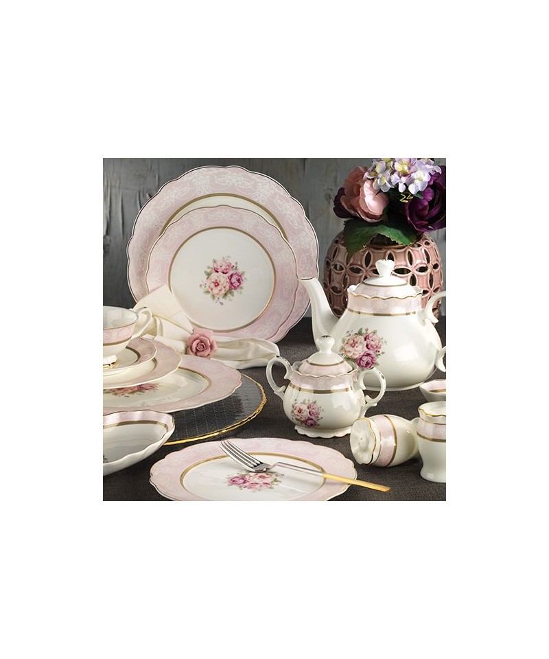 Порцелановите сервизи се съчетават лесно с красиви прибори за хранене, текстилни покривки и аксесоари за масата. Подходящи за семейният празник или подарък.Луксозен продукт.
